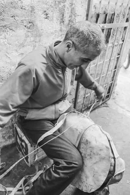 We were lost in the winding souks of Marrakech when we stumbled upon our partner Chay Abdelhadi’s leather pouf workshop. It stood out right away. Chay is meticulous about his materials and process: every leather pouf made in his workshop is vegetable dyed and hand stitched, typically by one person. They’re also double lined making them more durable and finer looking than the many others made nearby. The embroidered medallions on top are hand-stitched with cotton thread by women who work from their homes as a way to improve their livelihood. We believe these are the best Moroccan poufs the country has to offer.