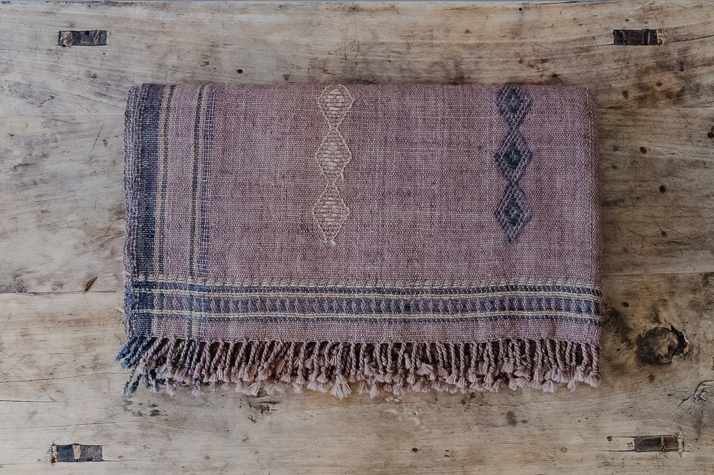 These textiles are handcrafted by the local artisans of Bhujodi, a traditional weaver's village in India. They are woven with old-world, wooden handlooms using techniques passed down by generations. Bhujodi throws are made of 100% hand-spun wool and natural dyes. Please note that because of the natural dying process and the nature of handwoven textiles, color and motif can vary slightly from piece to piece.