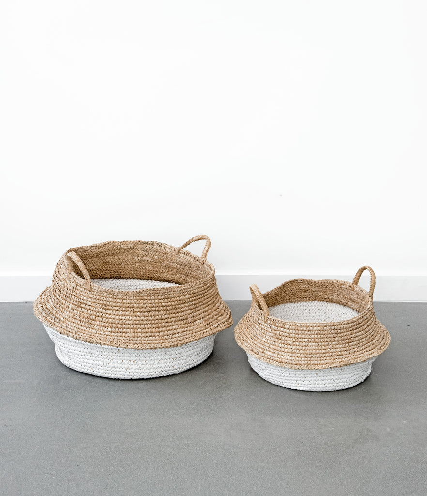 These baskets are handcrafted in Bali using natural water hyacinth. Please note that because these pieces are handmade from natural material there is variation making each piece unique.