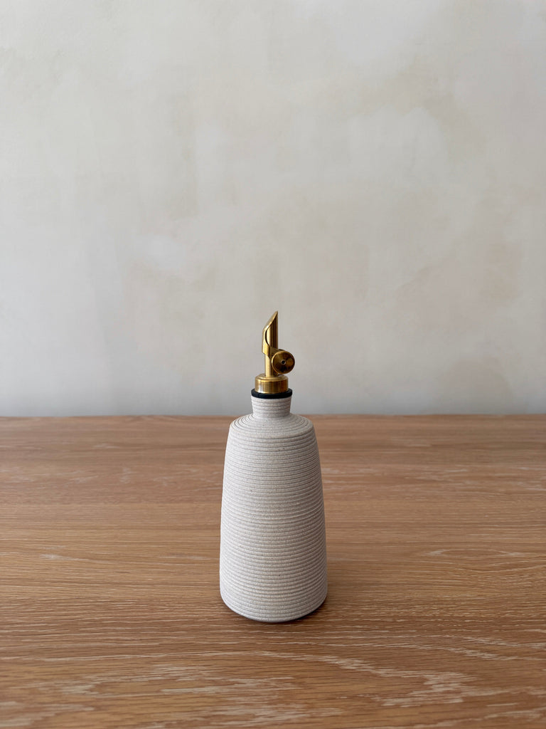 Thoughtfully designed for the home chef who values form and function, this stoneware bottle is fitted with an antique brass auto-opening pour spout for effortless everyday use. Durable enough for daily cooking, and elegant enough to display — it’s the perfect functional accent to elevate your kitchen space. Pair it with the Lucca Ceramic Olive Oil Bottle and Capri Ceramic Utensil Jar for a cohesive and layered kitchen moment.