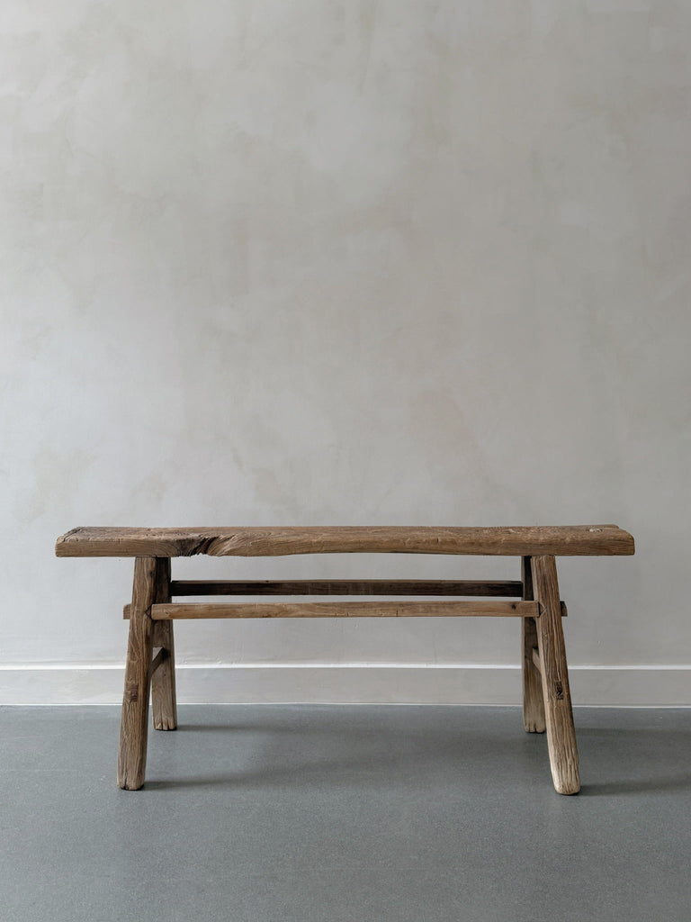 Crafted in China over a century ago from solid elmwood, each bench was built using traditional mortise-and-tenon joinery — a technique prized for its strength and craftsmanship. Every piece is truly one of a kind, with distinct variations that speak to its history and handmade character.