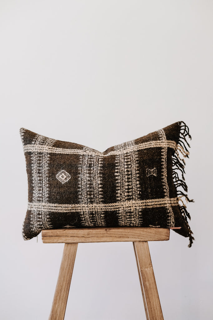 Our Bhujodi pillows are handcrafted by the local artisans of Bhujodi, a traditional weaver's village in India. They are woven with old-world, wooden handlooms using techniques passed down by generations using hand-spun wool and natural dyes. Featuring woven pastoral motifs and intricate textural details, they are the perfect accent to add an elevated and traveled vibe to your space!