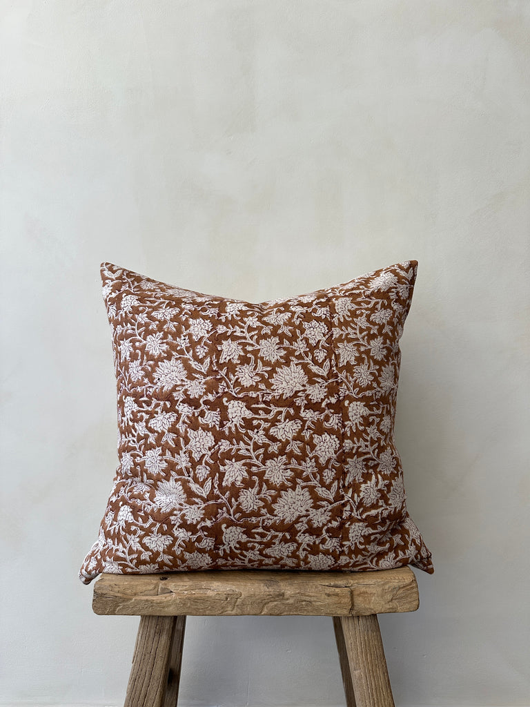 Add the perfect finishing touch to your sofa, bed, or lounge chair with this stylish linen Indian Blockprint Pillow. As versatile as it is chic, this comfortable hand-block-printed throw pillow features a distinctive print that not only introduces an intriguing layer of pattern to your space, but also serves as a subtle, neutral accent, effortlessly complementing and elevating your decor.