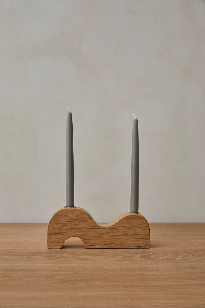 The Wave Candlestick Holder invites you to create a welcoming ambiance through gentle illumination and streamlined contemporary design. White oak ebbs and flows with organic grace, creating a candlestick holder that serves as both a source of warm lighting and as a piece of modern, sculptural art. Handcrafted and hand-finished, this candlestick holder can be added to your dining room table to elevate your tabletop decor, or placed in your living room for added soft glow. The natural swirls and patterns in the wood used to construct these pieces ensure that each candlestick holder will have its own unique character.
