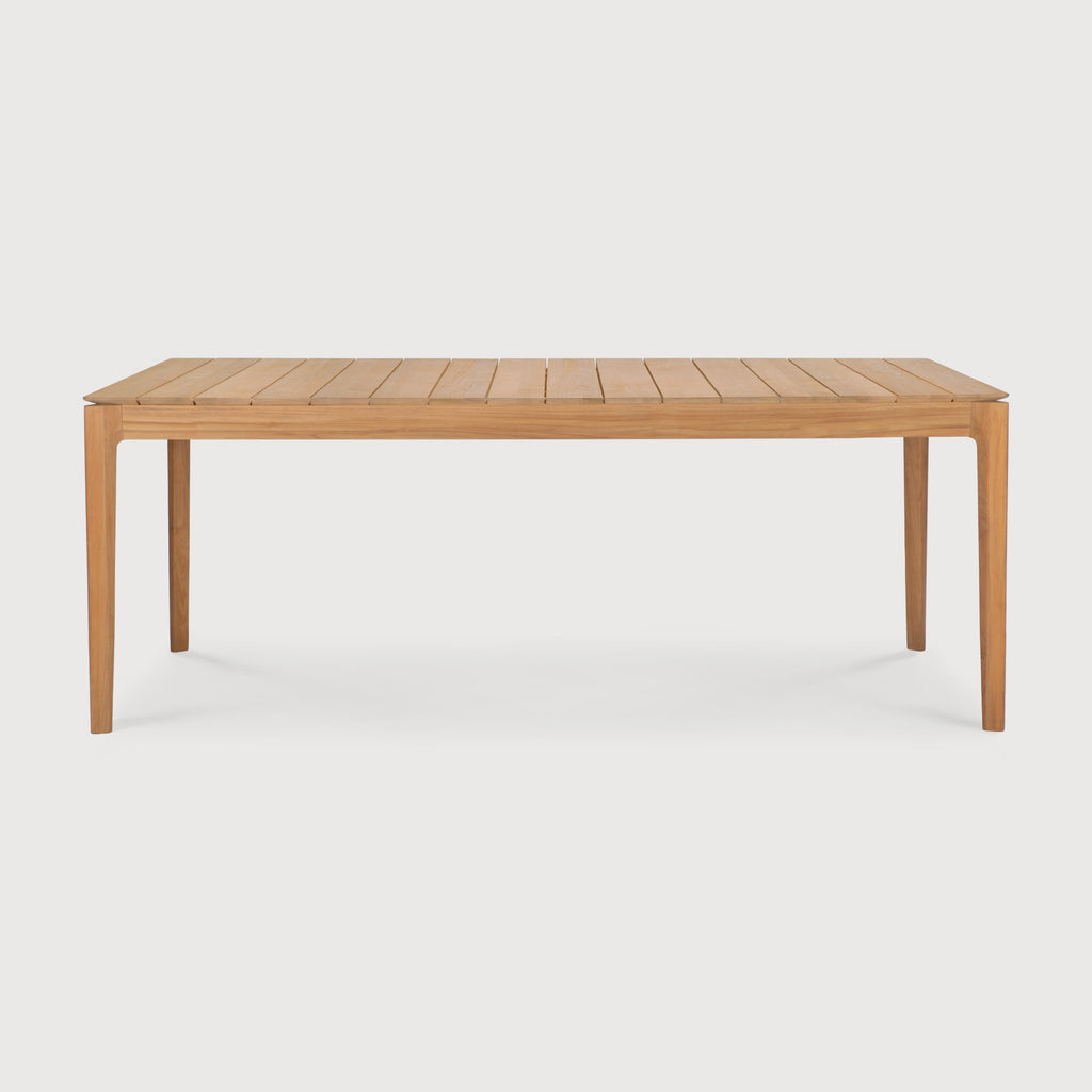 Expertly crafted from teak, the Bok Outdoor Collection is more than just furniture – it’s a collection of heirloom-quality pieces. Designed to seamlessly complement the rest of the Bok Outdoor Collection, this outdoor dining table contributes to a cohesive, modern aesthetic that elevates any outdoor space.This piece arrives with no protective finish, thus allowing the natural beauty of the teak to enhance over time.