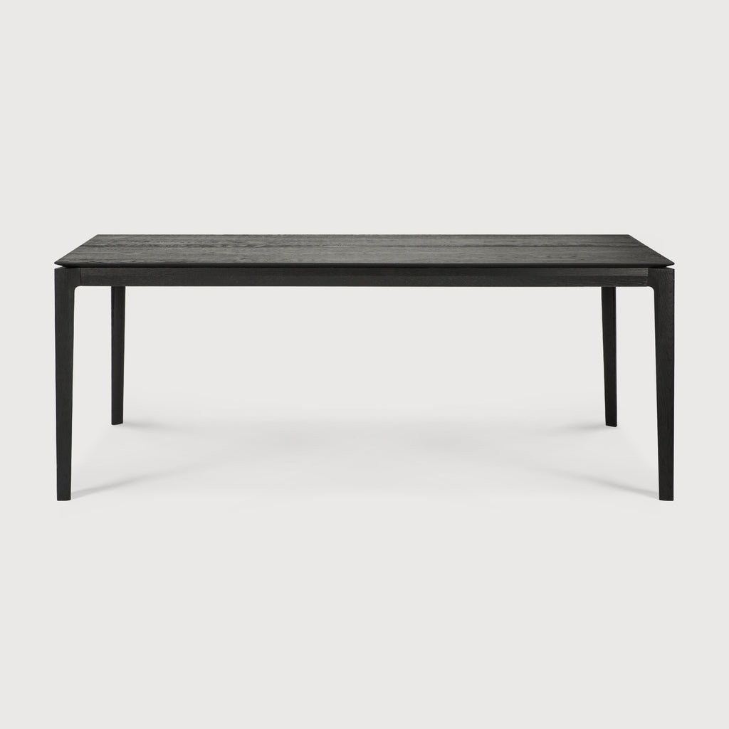This dining table comes in a variety of sizes to perfectly suit your space - from cozy to expansive. It is constructed of solid oak with a black varnished finish, and is the perfect complement to our Bok Dining Chair and Bok Bench.