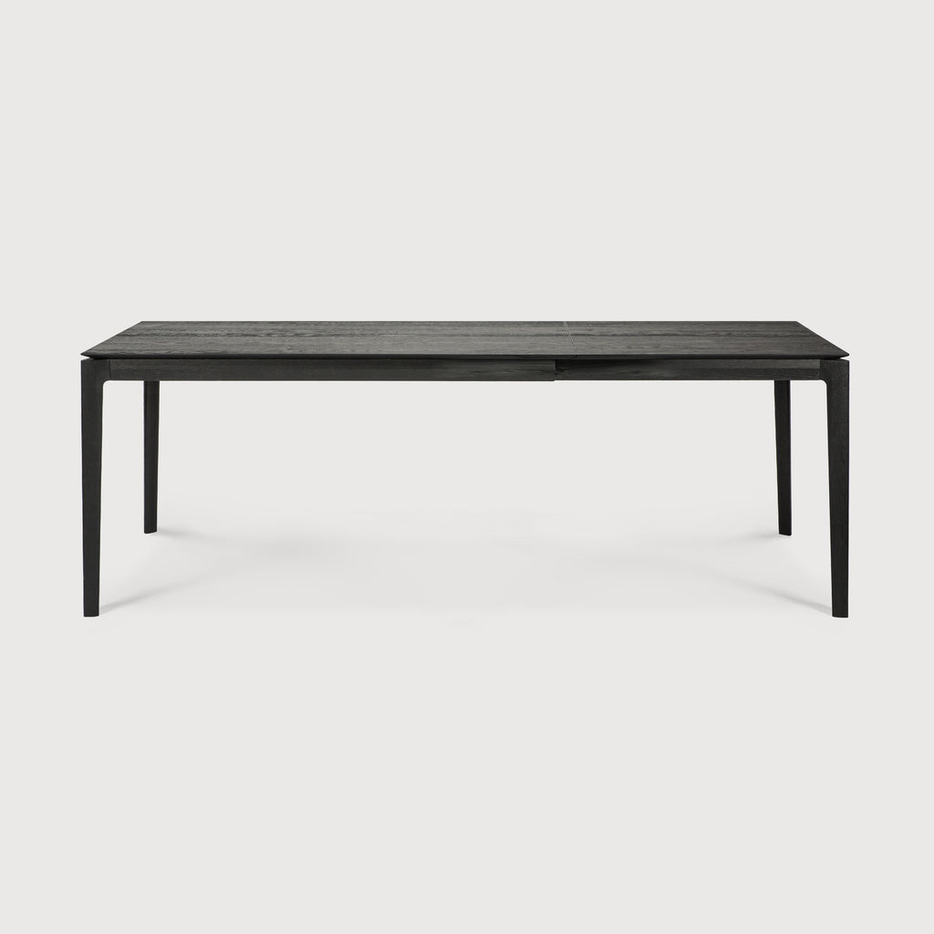 This extendable dining table comes in a variety of sizes to perfectly suit your space - from cozy to expansive. It is constructed of solid oak with a black varnished finish, and is the perfect complement to our Bok Dining Chair and Bok Bench.