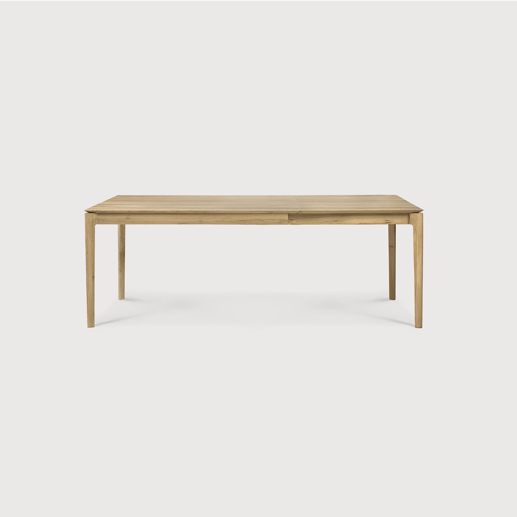 This extendable dining table comes in a variety of sizes to perfectly suit your space - from cozy to expansive. It is constructed of solid white oak with an oiled finish, and is the perfect complement to our Bok Dining Chair and Bok Bench.