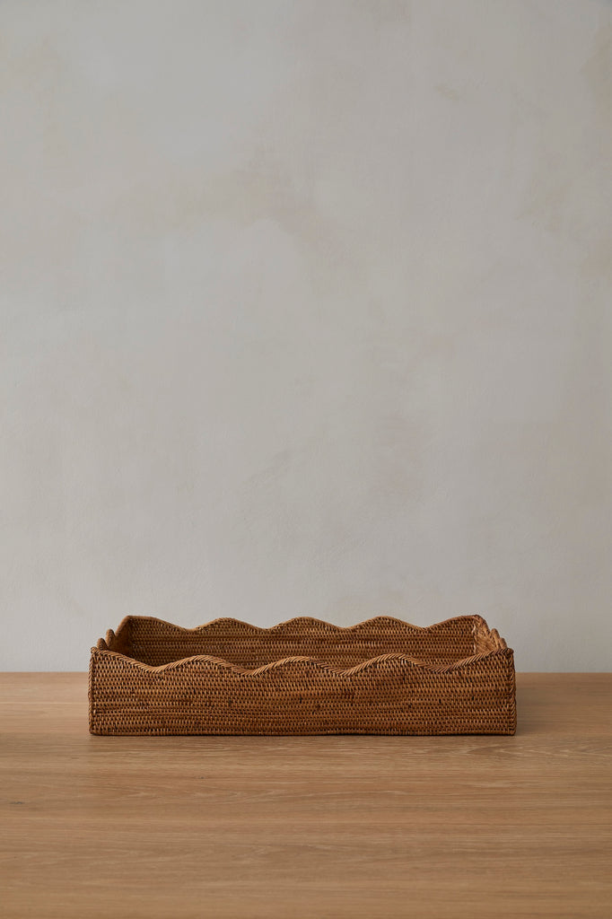 The woven Ionian Tenganan Tray makes a stunning and functional accent piece. Characterized by its organic, wavy edge, this basket tray can be styled on your coffee table or ottoman with your favorite candle, matchbook and accessories, set on a bedside table as a catch-all, or used to organize your bathroom counter or vanity. Both intricate and yet elegantly simple, the woven texture of this tray transforms it into an artistic piece, effortlessly enhancing and refining any space it graces. A serious multi-tasker, this tray can also be used for entertaining as a serving tray.